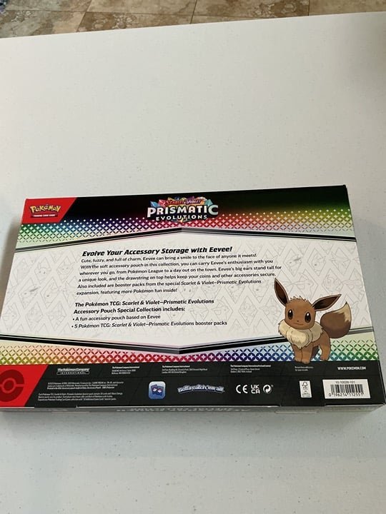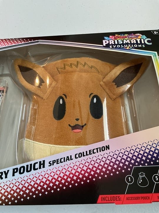 You are looking at a new Pokemon scarlet and violet Prismatic Evolutions accessory pouch special collection box.Please see attached photos.If you have any questions please feel free to contact me.Great gift for someone or collector.I will not cancel any orders for anyone.Good luck to all.