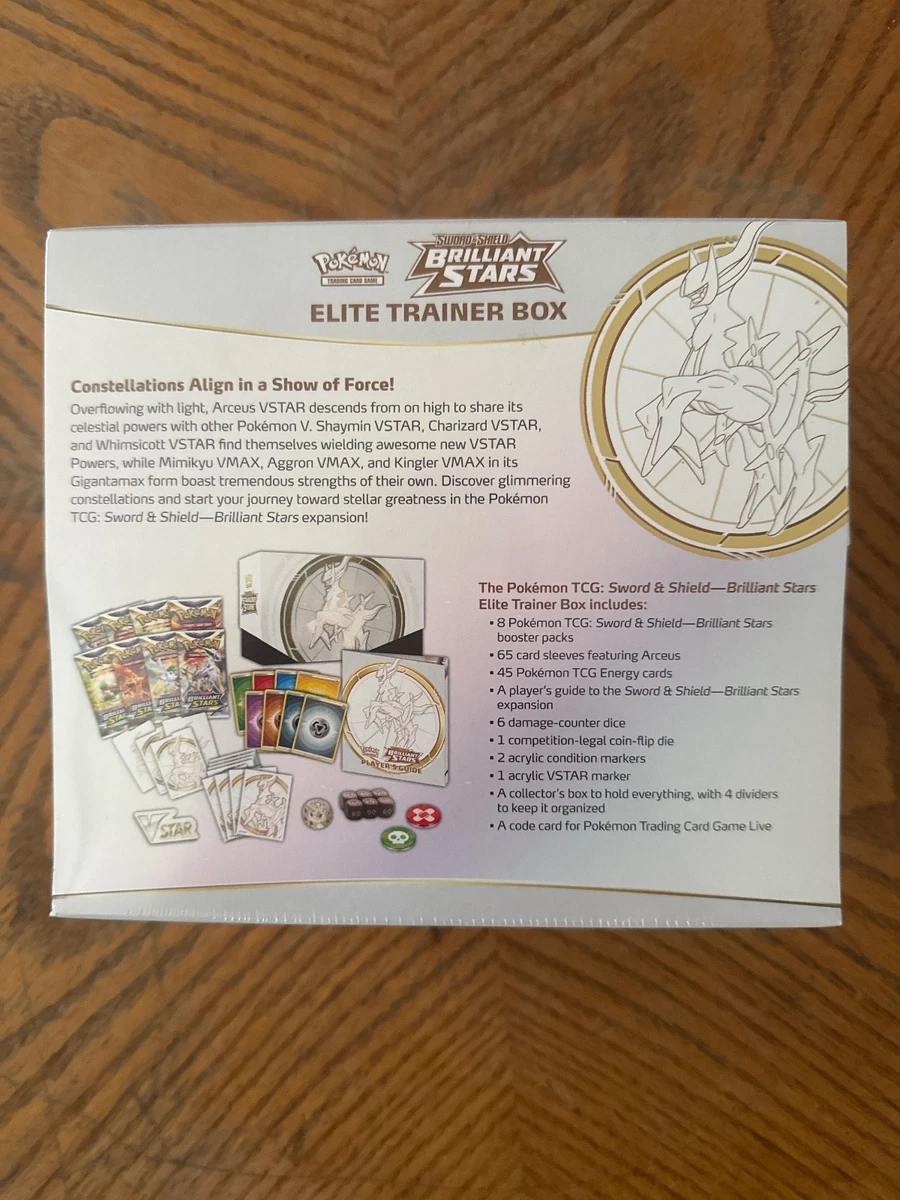 The Pokémon TCG Brilliant Stars Elite Trainer Box is a collectible card game product manufactured by Pokémon. This box contains cards from the Brilliant Stars set in English language. With a configuration of one box, it is suitable for ages and up. Released in 2022, this Elite Trainer Box offers fans of the Pokémon Trading Card Game the opportunity to expand their collection with exclusive cards and accessories. Perfect for both beginners and experienced players looking to enhance their deck with new and exciting cards.