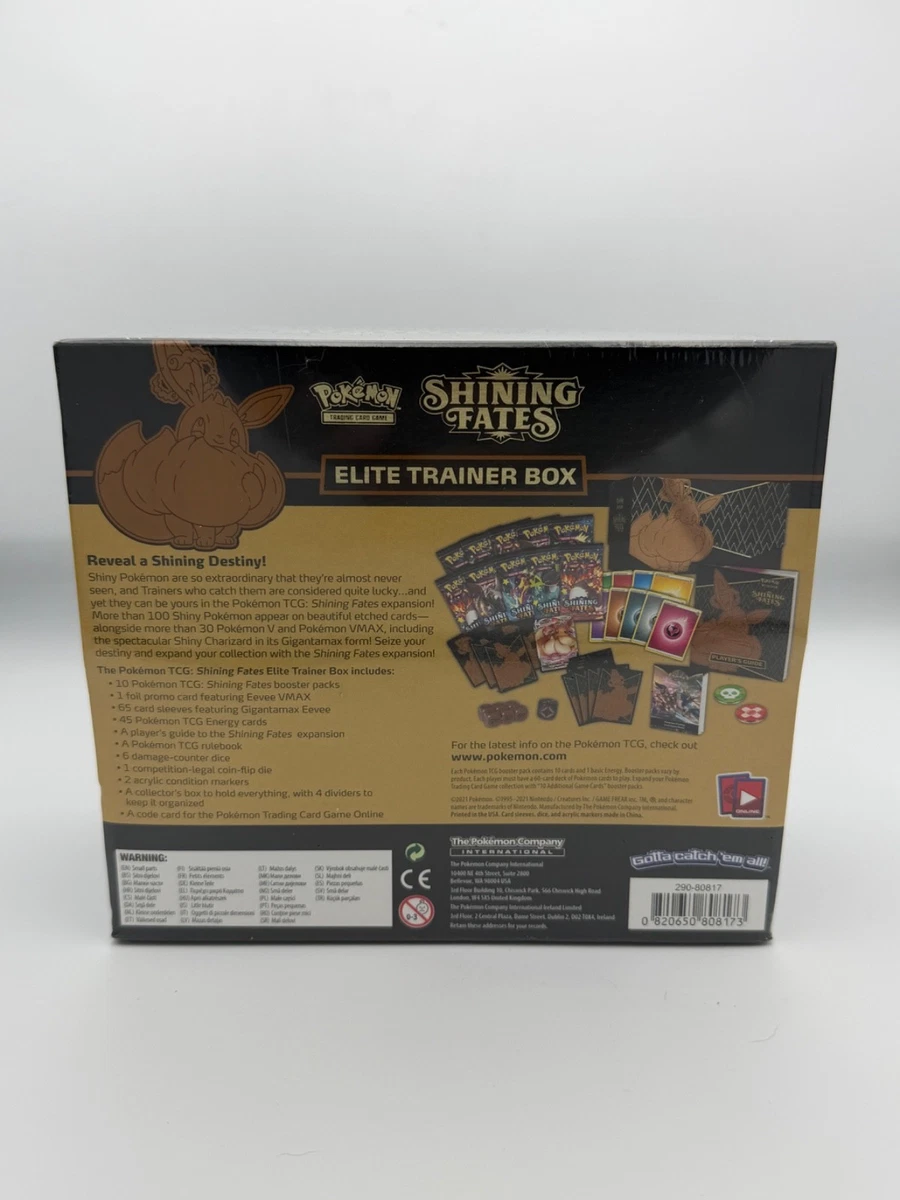 The Pokémon TCG Shining Fates Elite Trainer Box (ETB) Sword & Shield is a highly sought-after collectible item featuring popular characters like Pikachu, Lapras, Charizard, and Eevee. This factory-sealed box contains a set of standard-sized cards in English, perfect for collectors and enthusiasts of the Pokémon Trading Card Game. With promotional cards, booster packs, and unique collector’s edition items, this 2021 release is a must-have for any fan of the franchise. Made from high-quality card stock, this limited edition set offers a special addition to any Pokémon card collection.