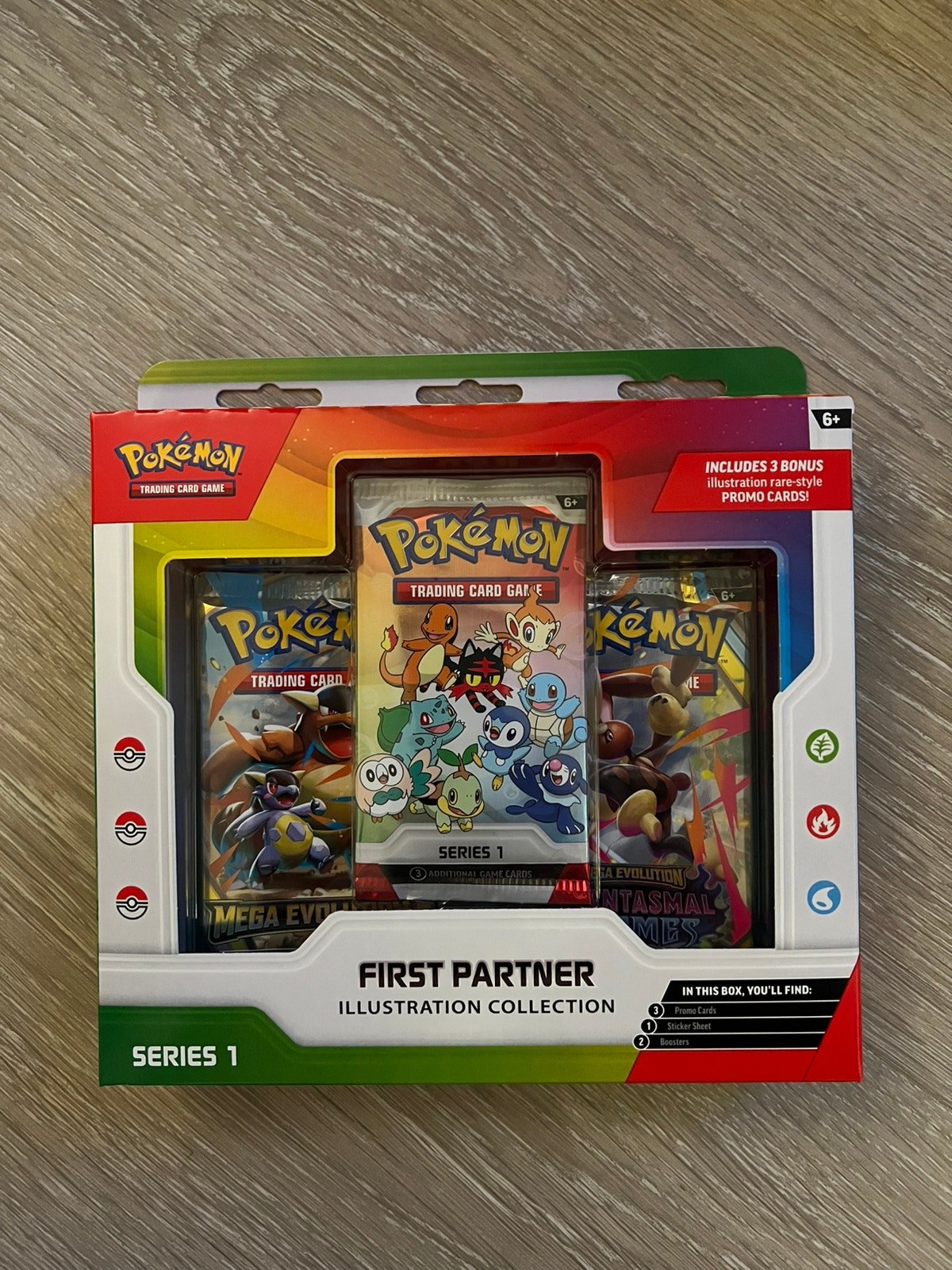 30 Years of First Partner Pokémon! Every Pokémon Trainer’s journey begins with a first partner-a loyal friend who stands by your side through thick and thin! Relive your own adventures and celebrate the bond between Trainer and Pokémon with a booster pack containing 3 of 9 illustration rare-style promo cards consisting of beloved first partner Pokémon from the Kanto, Sinnoh, or Alola region. You’ll also find two more Pokémon TCG booster packs and a fun sticker sheet featuring first partner Pokémon friends.